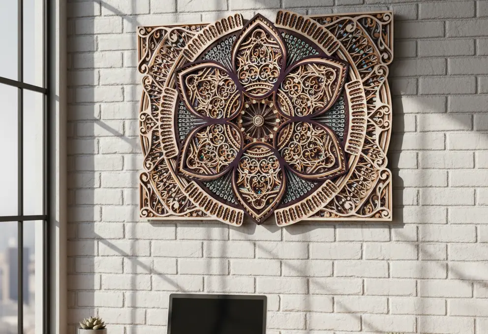 Elevate your home décor with ZENITH, a 9-layer premium mandala wall art crafted from high-quality Premium Veneer wood. Each layer is laser-cut with precision to create depth and symmetry, making it a stunning centerpiece for any modern or traditional interior. Perfect for living rooms, offices, and creative spaces.