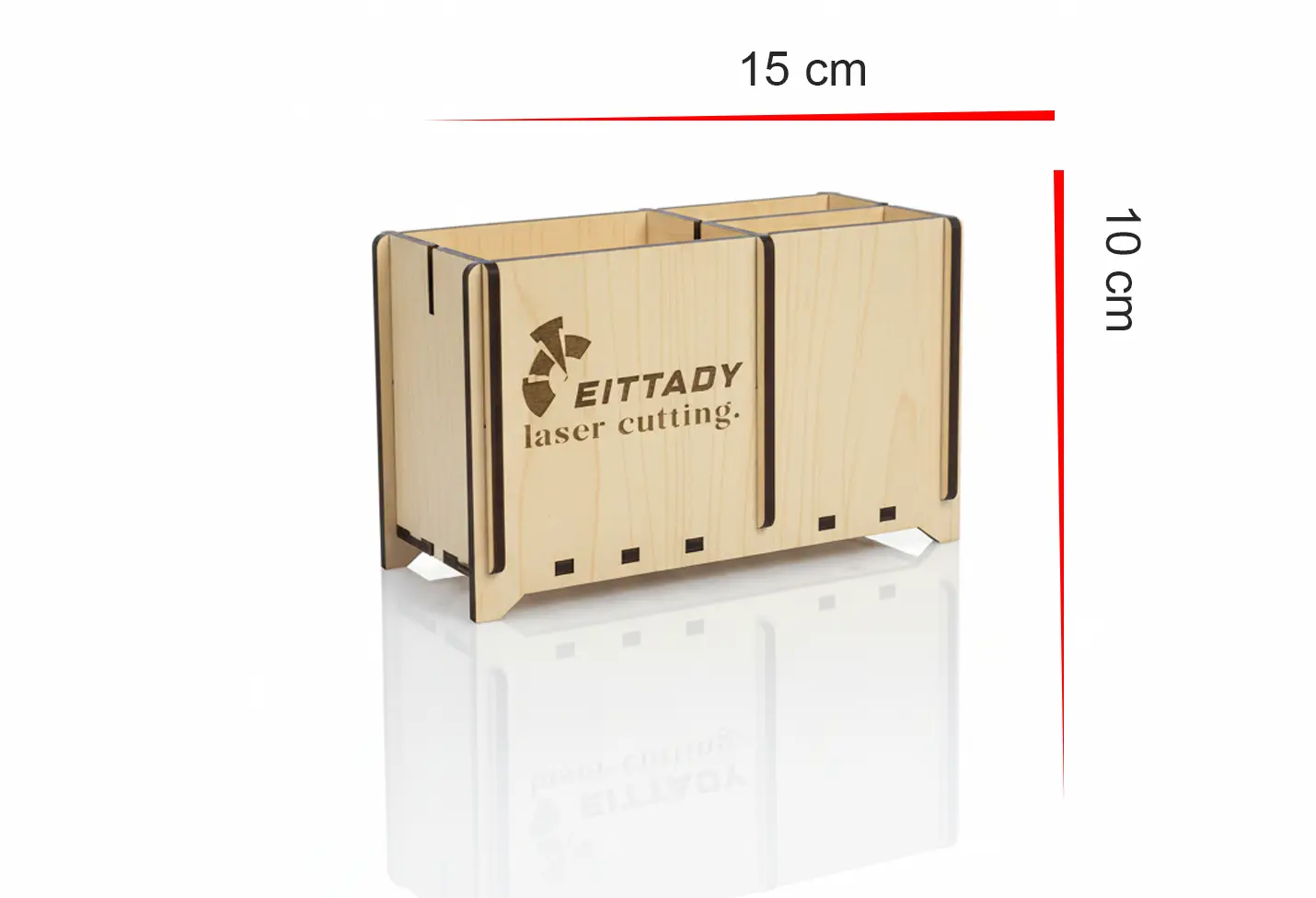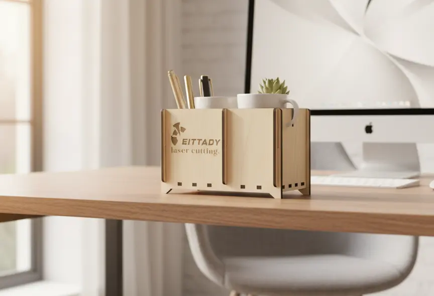 Premium laser-cut pen holder made from 3.25mm MDF plywood, designed for corporate branding, office use, events, and gift items. Custom logo engraving available. Bulk orders only.