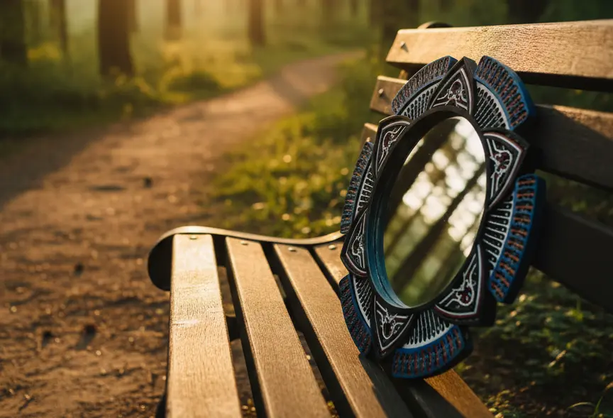 SOLARA is a perfect fusion of craftsmanship and creativity. Designed with nine intricately laser-cut layers of premium veneer wood, this piece features a central mirror surrounded by symmetrical mandala patterns — symbolizing harmony, light, and renewal.