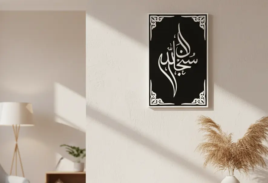 The Subhanallah Wall Art is a timeless piece that reflects faith, beauty, and craftsmanship. Made with premium 3mm MDF and a durable 6mm Gorjon wood frame, it’s designed to bring spiritual elegance to your home or office.